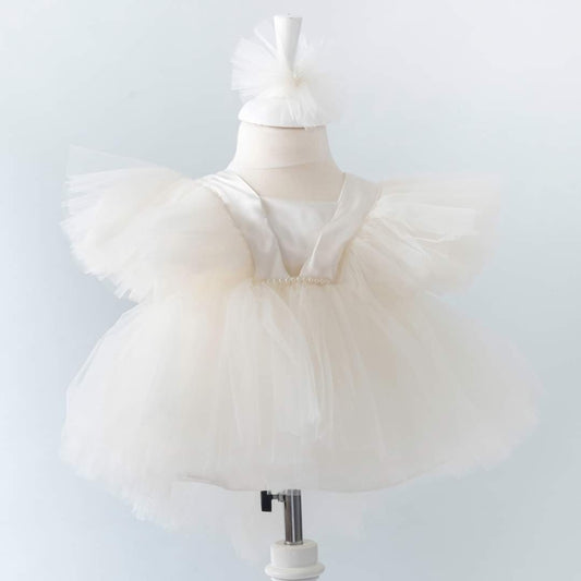Baby Girl elegant Costumes Sleeveless Solid Tulle Formal Dresses