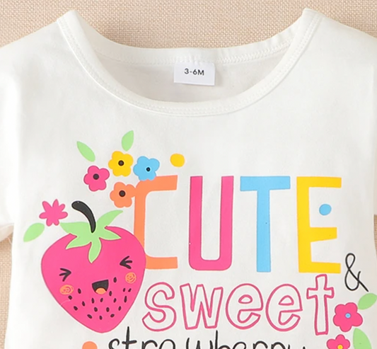Baby Strawberry and Letter Print Short-sleeve Dress Romper